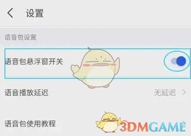 3、进入设置找到语音包悬浮窗开关点击右侧的按钮即可。