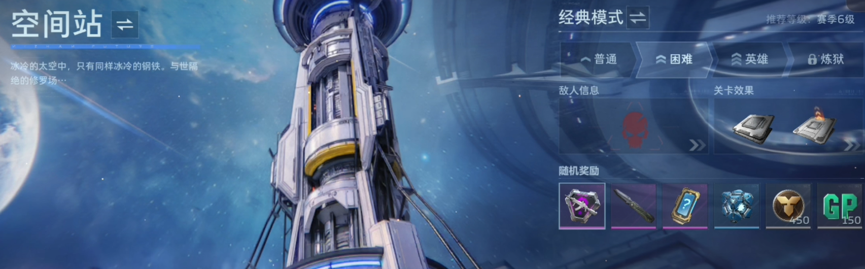现在游戏开放的塔防地图有空间站和20号星港这两个,每个地图都设置了四种难度供玩家挑战。塔防玩法跟平时的射击对战不一样,更加考验玩家对陷阱位置的规划和布局能力,光靠枪法好是不够的。