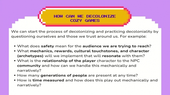 事情要从2025年的“Game Devs of Color Expo”活动说起。SBI的员工Tristan J. Tarwater在这场以“去殖民化休闲游戏”为题的演讲中,对着《星露谷物语》《动物森友会》这些全球玩家心中的“白月光”来了一波精准打击。