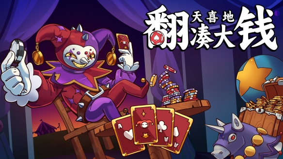 由Mash开发、Oro Interactive发行的“放置增量小丑牌”游戏《翻天喜地凑大钱》,今日正式定档,将于2025年12月11日在Steam发售。在这款游戏中,玩家无需精通牌技,核心目标只有一个,通过不停地翻牌来组合成疯狂的牌型凑钱,从诡计多端的小丑手中赢回自由。