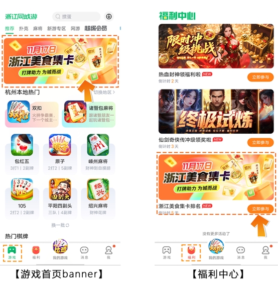 方式二(便捷入口):IP地位于浙江地区的用户可通过任意同城游安卓端APP,点击【福利中心】活动入口,一键速达赛事活动!