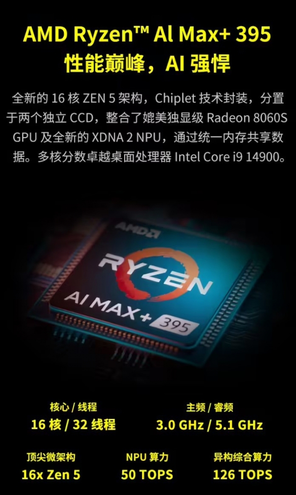 具体配置方面:采用无内置电池设计,机身重 565 克,搭载 GPD 独研 FlexPower 灵活电源技术,支持背挂一体式/线充分离式模式切换;屏幕支持 AMD FreeSYNC Premium,响应时间 6 毫秒,sRGB 色域 100%。处理器基于 Zen 5 架构,16 核 32 线程,主频 3.0 GHz,加速频率 5.1 GHz,NPU 算力 50 TOPS,集成 Radeon 8060S GPU,可运行最新 3A 大作。