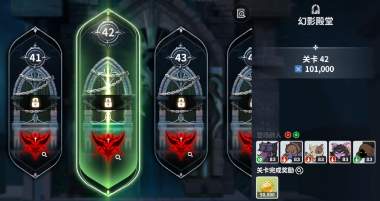 说到金币,修炼区域的幻影殿堂也是不容忽视的地方。这里能通过打挑战获得金币,通关后不仅有金币奖励,还能拿到技能强化的材料,甚至还有召唤券,打挑战时可以顺便获得其他资源,没事做做幻影殿堂也是不错的选择。尤其是战力较高的玩家,越往后面打,奖励就越丰富。