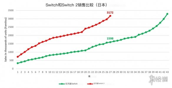 相较初代Switch同期数据,Switch2销量翻倍增长,市场热度显著。自首发周登顶后,这是其第二次问鼎日本周度销量冠军。