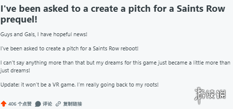 原Volition工作室设计总监克里斯·斯托克曼近日在Reddit论坛透露,他受邀为系列第七部作品撰写项目提案。斯托克曼将此次机遇称为"梦想成真",并强调他构思的是一部前传作品——更像是《黑道圣徒0》而非正统续作。