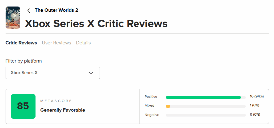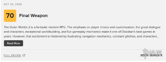 由黑曜石开发、Xbox发行的科幻太空歌剧RPG《 天外世界2 (The Outer Worlds 2)》将于10月30日登陆PC、PS5和XSX|S平台,支持XGP。目前游戏的M站媒体评分已经解禁,截至发稿前,共有17家媒体对本作进行评测,M站媒体均分为85分(XSX版)。