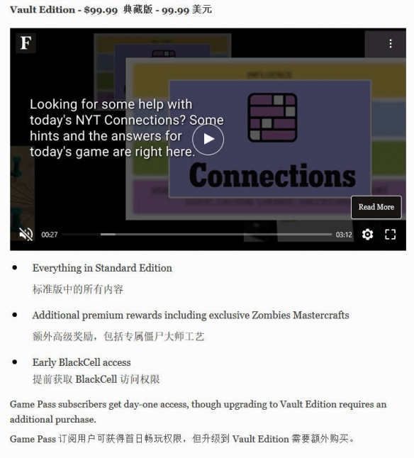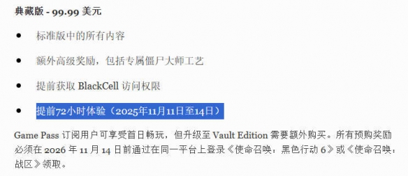 此外,福布斯曾在一篇报道中提到游戏的“金库版”将提供72小时提前游玩权限,但该内容在文章发布后不久即被删除。