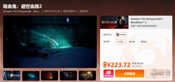 《吸血鬼:避世血族2》新游上市 券后9.4折