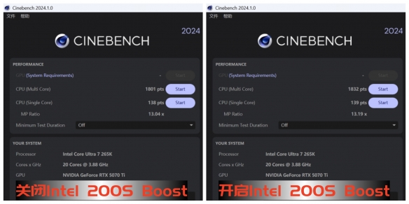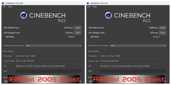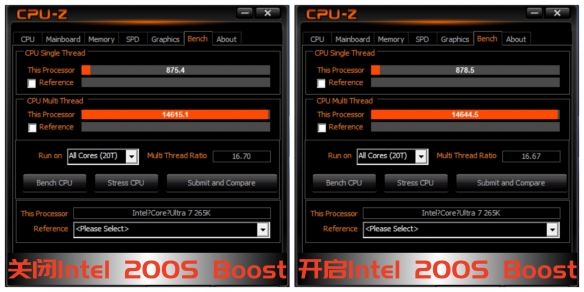 而通过一系列的软件测试来看,这颗装在Z890 AORUS ELITE WIFI7 小雕中的Intel Core Ultra 7 265K处理器在开启Intel 200S Boost后都获得了不同程度的单核以及多核的性能提升。
