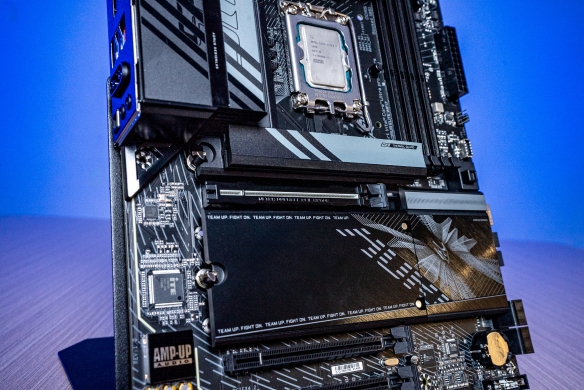 在存储接口方面,主板提供了一条PCIe 5.0 x4和三条 PCIe 4.0 x4的 M.2 硬盘插槽,其中M2A以及M2B插槽走的是CPU通道,支持的最长硬盘规格为M.2 25110。考虑到PCIe 5.0的发热量更大,技嘉还贴心地为其配备了双面散热片,可快速冷却降温,大幅提高了PCIe 5.0的散热性能。除此之外,技嘉还提供了实心供电插座,加快信号传输的速度,降低延迟的同时并减少重复连接造成的金属磨损。