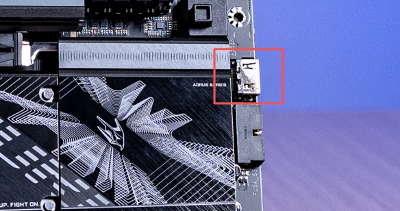 值得一提的是,技嘉 Z890 AORUS ELITE WIFI7小雕主板还有一块副屏接口,采用的是HDMI 1.4视频输出口,位置在主板右侧正面,可实时监测主板性能释放,显示效果相当不错。