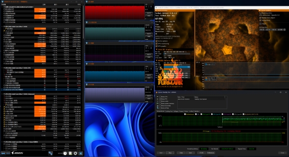 为了证明技嘉 Z890 AORUS ELITE WIFI7 小雕主板的散热堆料并非纸上谈兵,我们也通过半小时的双烤来考验其满载状态下的散热表现。通过结果可以看出,即便这颗Ultra 7 265K处理器与这张技嘉RTX 5070 Ti GAMING 显卡都在以两百多瓦的超高功耗运行,主板的整体温度也并未超过40℃,烤机过程依旧平稳进行。