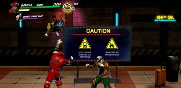 战斗系统中还包含可变化输入的投掷技巧,将敌人击飞至背景可破坏特定物体获取道具。独特的怒气系统在击中敌人或受到伤害时积累,当怒气槽达最大值时可进入强化状态的"怒气模式",不仅能提升攻防能力,还可释放名为"Beat Rush"的终结技,用正义之怒战胜邪恶势力。