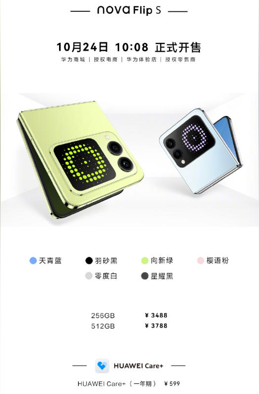 华为于10月24日正式推出nova Flip S纵向折叠屏手机,起售价3488元,配合首发立减100元优惠后,实际到手价3388元起。该价格使其成为华为目前最亲民的折叠屏产品,有望进一步降低折叠屏手机的消费门槛。