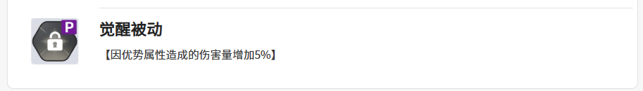 内布拉最后的一个觉醒被动,是根据本身的优势属性来造成一个伤害量提升的效果,只要她觉醒这个被动就可以使用,让她在伤害量上面有5%的增加效果,后期其实这个角色他在技能使用上面有很多的减益,都是可以直接施加给敌方的,大家用它的核心就是利用好这些减易效果来控制敌方,但是这个角色的弱点也非常明显,因为目前她没有一个技能是带群攻的,基本上都是施加给敌方单体的效果,所以需要队伍帮助。