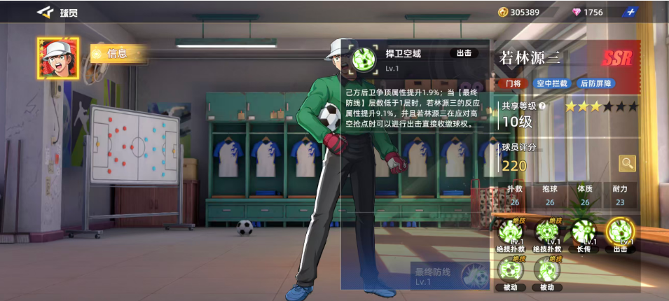 捍卫空域:这是若林源三如果想要主动出击的话就可以用到的一个技能,使用的时候大家要注意,一般是在己方后卫争顶属性上面有所提升,提升的数值只有1.9%,但是在其中当【最终防线】层数低于1层时,若林源三的反应属性提升9.1%,并且若林源三在应对高空抢点时可以进行出击直接收缴球权,所以利用这个技能大家夺过球权的机会非常大,建议大家可以放在一个关键的时机使用。