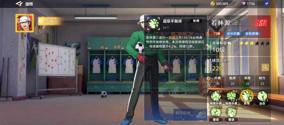 若林源三在游戏中是一位门将球员,这个定位的球员现在在红卡当中可是很难找的,所以他自然在门将能够带来的效果上面有不错的后防屏障效果,而且利用这个球员的技能大家也可以进行一些空中拦截的动作,在球员评分达到220的基础上面,大家就可以判断他的强度目前是处于比较受欢迎的程度,基础的属性效果当中抱球26、体质26,耐力23,补救26的分值都代表了可以用这些动作带来球员优势,而且在自身的六维图当中他的所有数值都超过20,目前所有属性当中基本没有低于20分以下的,所以他绝对是非常热门的一个门将选手。