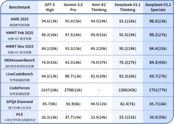 在经过了 2 个多月的测试后,DeepSeek 的 3.2 版本终于正式上线。新模型分为 DeepSeek V3.2 和 DeepSeek V3.2 Speciale 两款,前者平衡了推理能力与输出长度,后者则「将开源模型的推理能力推向极致」。根据官方介绍,DeepSeek V3.2 平衡了推理能力与输出长度,适合问答、通用代理任务等日常使用场景。它在公开的推理类测试中达到了 GPT-5 的水準,得分仅略低于 Gemini 3.0 Pro。
