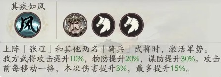张飞可协助激活的军势有:张辽的骑兵队、于禁的枪兵队、曹仁的绿属性队。其中骑兵队和枪兵队是目前相对强力、且能更好发挥张飞特点的队伍。