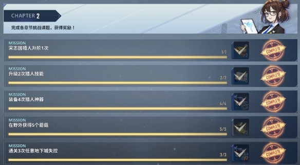 每张地图都有不同星级的难度,每通关一个新的星级难度都会获得首通的保底奖励。同时挑战课题的奖励可以保证玩家推进地图和剧情时有正向反馈,不至于陷入“数值碾压——刷材料——数值碾压——刷材料”的肝性循环。