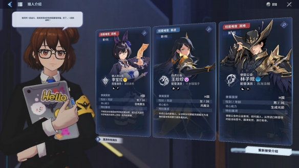 除去主角程肖宇之外,玩家还可以招募猎人加入战队。招募猎人时可以选择使用银币进行概率性招募,失败后也会保留概率和部分银币,也可以选择使用招募券直接成功招募。