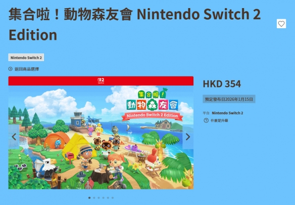 《 集合啦!动物森友会 (Animal Crossing:New Horizons)》Switch 2 版本正式公布,预定2026年1月15日推出,同步上线3.0大型免费更新。