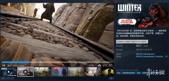 《 冬日幸存者 》现已在Steam正式发售。这款由DRAGO Entertainment打造的开放世界生存狩猎游戏,将带您体验严冬求生的残酷与壮美。游戏首发享限时特惠,仅需41.40元,并支持简体中文。目前,本作在Steam平台的玩家评价为“褒贬不一”。