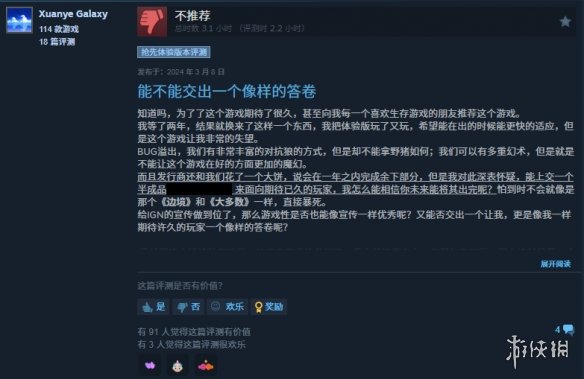 看了眼评价,果然是“褒贬不一”。差评老哥狂喷优化和BUG,比如“能花式打狼却拿野猪没辙”,笑死;而好评玩家则觉得它有剧情指引,比那些“开局一根棍,装备全靠扔”的生存游戏要友好。