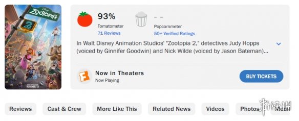 迪士尼动画续集《疯狂动物城2》在公映前收获普遍赞誉。烂番茄数据显示,截至撰稿时,该片基于71条评论保持93%的新鲜度,被多家媒体评为迪士尼近年最出色的系列续作之一。