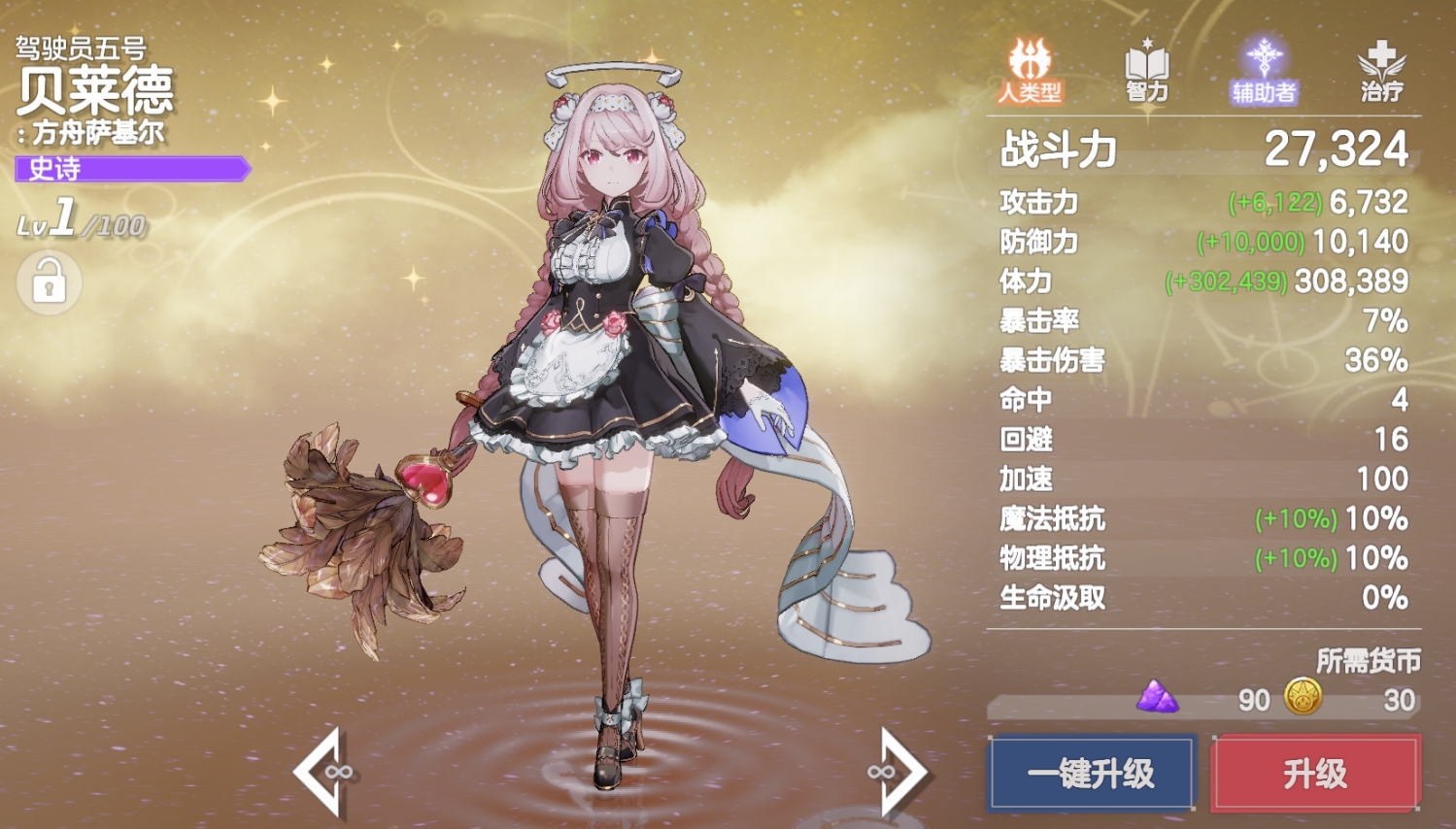 强悍的加双暴能力也令贝莱德成为了玩家在新手无限十连池里最佳的选择,而且她会指定向己方攻击力最高的角色释放,因此能将双暴增益百分百加到主C身上,再加上双暴又是所有主C非常需要的属性,也令贝莱德能与所有主C搭配作战。而且游戏又会在加速成长任务里送给玩家四个角色自选箱,玩家只需在里边选择达芙妮(前排)、梅菲斯托佩莱斯(法伤大C)、乙叶(收割)、梅尔菲斯(召唤C),就能组成一套很完整的开荒队来对应前期的战斗。