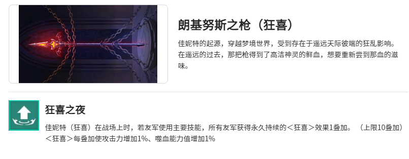 佳妮特(狂喜)在战场上时,所有友军的魔力恢复量增加10%(等级1解锁)