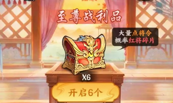 5)收集至尊战利品。必得点将令,概率获得10倍点将令,以及概率获得红将碎片,非常不错的战利品。