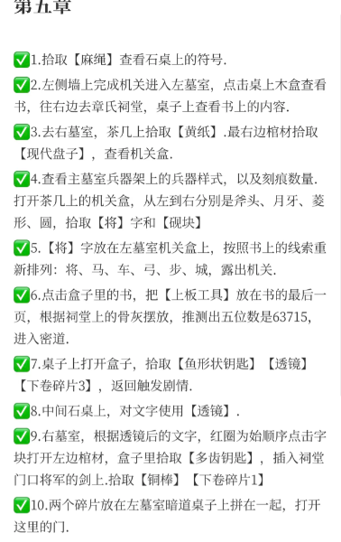 《缠重山2冥玉钞》第五章通关攻略来了:第五章需综合 解谜 开启结局。关键步骤包括:排列“将马车弓步城”打开机关盒;根据骨牌推算密码63715进入密道;组合透镜与拼图破解多处棺椁;最后用铜棒走完路线图,获取手摇杆并跟随NPC指引即可通关。
