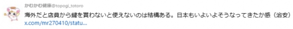 多数网友认为,虽然不便,但这种制度是店家为了自我保护而不得不采取的措施。随着安全意识的提升和社会环境的变化,日本店家引入“收据密码厕所”的做法正逐渐普及。或许各位未来到日本旅游时,需要找厕所的话,餐厅店家可能已不再是最佳选择了。