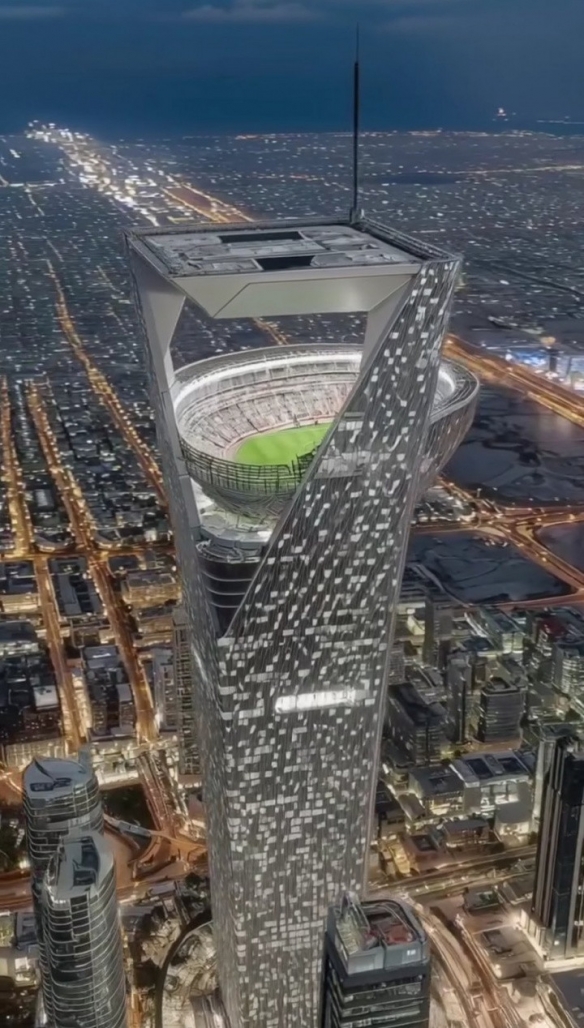 据媒体报道,沙特阿拉伯正式宣布了一项震撼世界的建筑计划:将在未来新城NEOM建造全球首座“空中球场”。该体育场设计将被提升至约350米(1150英尺)的高空,预计可容纳46000名观众。