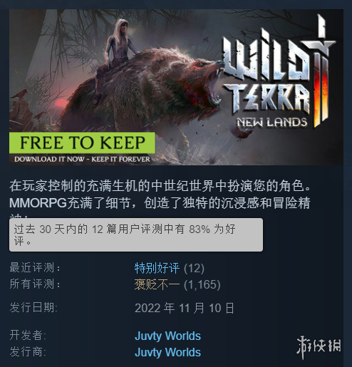 《荒野之地2:新大陆》是一款开放世界生存制作类游戏,而现在,这款游戏在Steam上开启了喜加一活动:北京时间 12 月 17 日凌晨 2 点至 12 月 19 日凌晨 2 点,玩家可以在Steam上免费领取这款原价为165元的游戏!怎么样?是不是很爽呢?还在犹豫什么, 赶快点击这里免费领取吧>>>