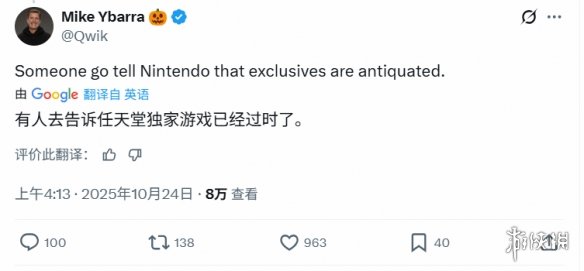 针对这一观点,暴雪娱乐前总裁兼Xbox前副总裁迈克・伊巴拉通过社交媒体提出质疑。他讽刺性地建议:“不如请人去提醒任天堂,告诉他们独占模式已经过时了!”此举显然是以任天堂凭借独占游戏取得的成功案例,来反驳莎拉・邦德的立场。
