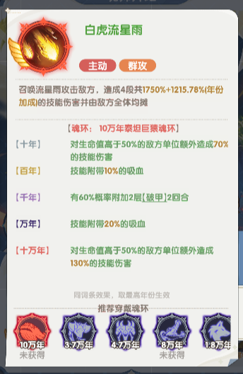 召唤流星雨攻击敌方,造成4段共1750%+(年份加成)的技能伤害并由敌方全体均摊