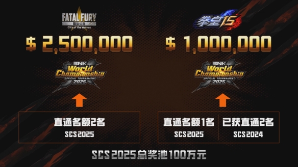 然而,在刚刚落幕的SCS 2025总决赛现场,我似乎找到了答案。当《拳皇 15》项目冠军SANWA|M’成功卫冕,高举奖杯接受全场欢呼时;当传奇选手“小孩”在《饿狼传说:群狼之城》项目加冕,续写自己不朽神话的那一刻,我深切地感受到,即便没有巨头级的流量加持,格斗电竞依然以其纯粹的竞技魅力、深厚的文化底蕴和沉浸式的现场体验,在这片看似饱和的电竞土壤中,散发着自己的独特光芒。
