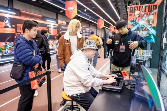 另一方面,它以“赛事+展会”的形式打造了一个沉浸的格斗文化体验馆。 在首钢园的赛场,SCS构建了一个以赛事为中心、格斗文化体依靠赛事渗透的综合性内容平台。核心竞技区之外,文化展区如同一个微型的SNK博物馆,用SNK品牌编年史、复古街机、水友赛等,唤醒老玩家的情怀,同时为新观众完成文化科普。