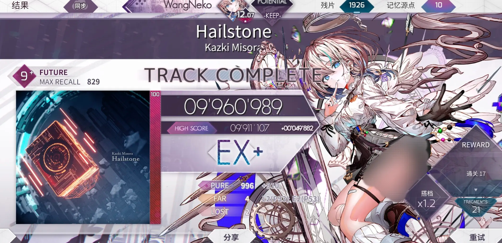 哀寂他在游戏当中通过购买专属的Lucent Historia曲包可以获取,然后在其中进行觉醒之后也可以解锁他的一些能力,这个角色后期在世界模式地图9-3里面有更大的机会可以获取,目前她的基础效果,也就是技能上面可以通过困难歌曲里面的解锁来使用,这个哀寂收集条的技能,这个技能效果其实是跟大家歌曲点击里面收集到的回忆率有关的,因为大家回忆率里面计算的效果基本都是跟大家点击是否生效有关的。