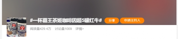 近日,“一杯霸王茶姬咖啡因超5罐红牛”话题登上微博热搜。据密度财经报道,不少网友分享有“喝完奶茶睁眼到天亮”的经历,吐槽茶饮提神效果远超预期。