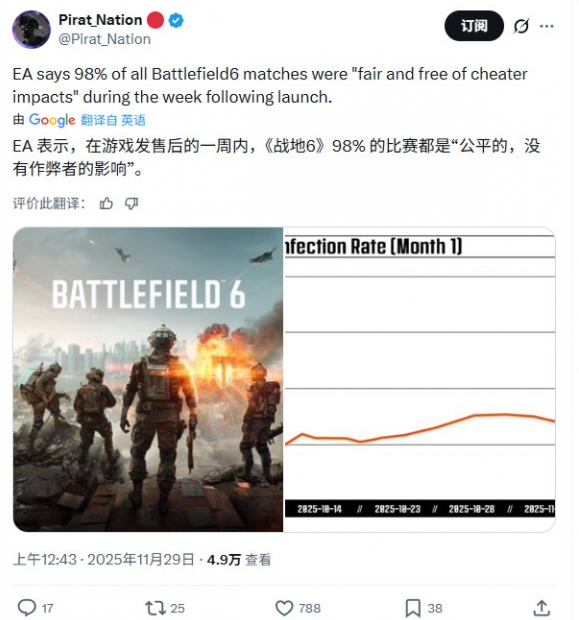 2.《战地6》反作弊系统战绩卓越 发售首周公正率高达98%