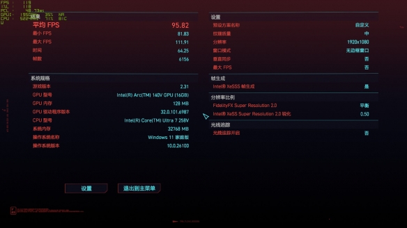 首先来看看《赛博朋克2077》,这款游戏从问世以来的饱受诟病,到现在不断优化后的口碑反转,相信能够在这台X1 Air掌机掌机搭载的酷睿Ultra 7 258V核显上发挥相当可观的性能表现。