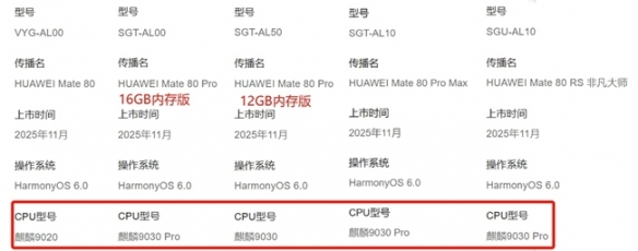 新机性能榜剩余选手,皆是华为Mate系列新机,包括 华为Mate X7 、 Mate 80 RS 非凡大师/Pro Max/Pro/标准版 ,不过因鲁大师后台跑分样本不足暂未收录,但麒麟9030/9030 Pro新芯片亮相,由于官方未公布芯片详细规格参数,咱根据网上的零散信息,总结了麒麟9030/9030 Pro的基础规格,仅供各位参考。