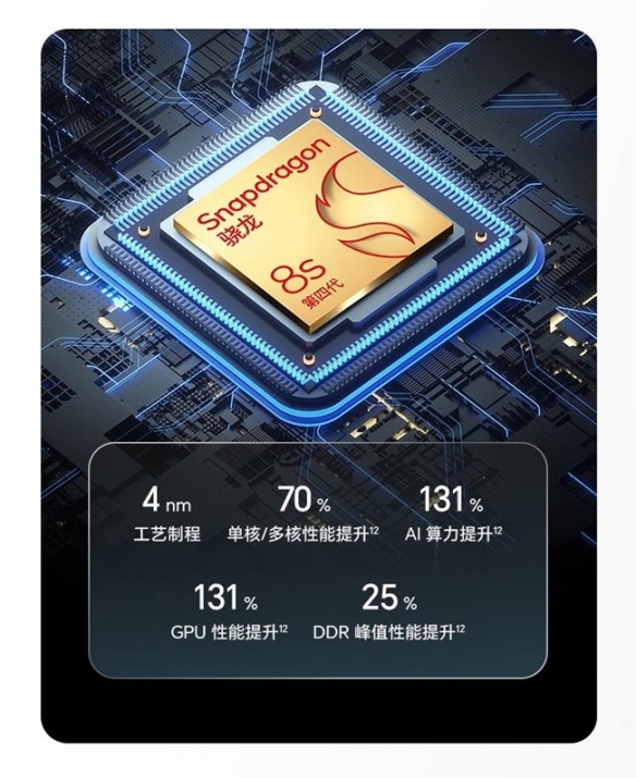 AI榜单第二名 荣耀500 ,它搭载的骁龙8s Gen4在AI性能上同样不容小觑,相较前代8s Gen3,官方数据有44%提升幅度,最终荣耀500的AI分数为203440分。