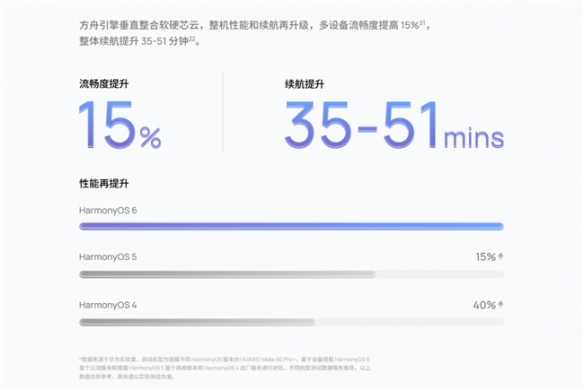 华为Mate多款新机同样因数据原因暂未进入榜单,但目前从华为官网的信息看,搭载HarmonyOS 6的设备,相较HarmonyOS 5、HarmonyOS 4的系统环境,整机流畅度能分别提升15%和40%,提升幅度可谓非常大。