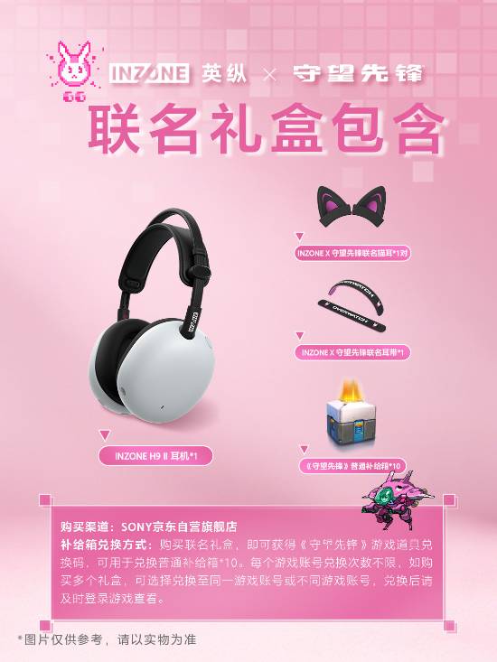 玩家可自行组装联名耳带、猫耳配件至H9Ⅱ耳机,打造“D.Va认证”造型。礼盒含兑换码,可领10个普通补给箱且账号不限兑换次数,助力皮肤库扩充。