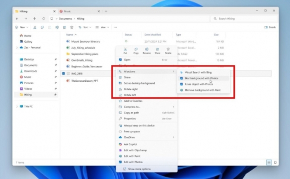 “AI操作”功能于今年5月引入,其初衷是提供诸如对图片进行必应视觉搜索、模糊背景或一键移除背景等快速AI辅助操作。然而,许多用户反馈指出,这些操作大多只是将用户跳转至其他应用程序,其核心功能与传统的“打开方式”选择重复,且强制性占据宝贵的菜单空间,显得多余且低效。