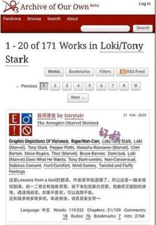 第一步:用户通过网址进入到网站(网址:https://1.ao3-cn.top),之后选择【toki/tony stark】,进入下一个页面。